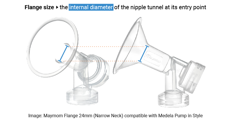 Flange size refers to the internal diameter of the nipple tunnel at its entry point. Over the years, various methods have been proposed for selecting an appropriate flange size for effective pumping. Historically, most pump manufacturers included only 24 mm or 25 mm flanges with their products, assuming that a "one-size-fits-all" approach would suffice. However, growing awareness among International Board Certified Lactation Consultants (IBCLCs) and mothers has highlighted that individual differences in anatomy make this approach inadequate. As a result, there is now a broader understanding that flange sizing must be tailored to each person's unique needs.