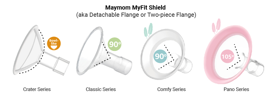 To address this diversity, Maymom has developed four series of flanges designed to accommodate different nipple sizes and breast shapes: Classic, Crater, Comfy, and Pano. The Classic series, modeled after designs from prominent pump manufacturers, features an expanded range of nipple tunnel sizes to meet previously unmet needs. Many mothers find this series effective and well-suited to their requirements. The Comfy series alleviates pressure on the breast tissue caused by the edges of the Classic series flanges. For individuals with more rounded or ball-shaped breasts, the Crater series provides an optimal fit, while the Pano series is designed for flatter breast shapes with larger volumes. This range ensures that mothers can find flanges better suited to their specific anatomy and comfort.
